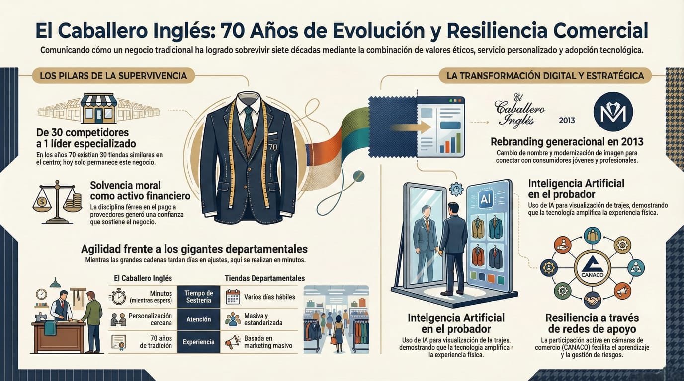 En una ciudad donde las plazas comerciales concentran gran parte del consumo, el centro histórico ha tenido que redefinir su papel. El Caballero Inglés ha sobrevivido gracias a una ventaja competitiva que las grandes tiendas no pueden replicar: la rapidez y la personalización del servicio.